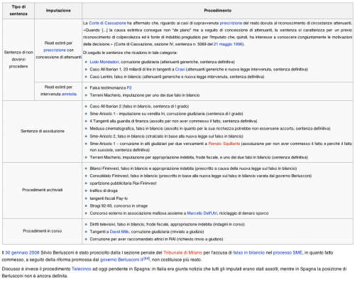 Tanti per rinfrescar la memoria consiglio di dare un’occhiata alla tabella qui sotto (da Wikipedia). Da un’idea di quanto sia “dinamico” e creativo il nostro amico Cavaliere.